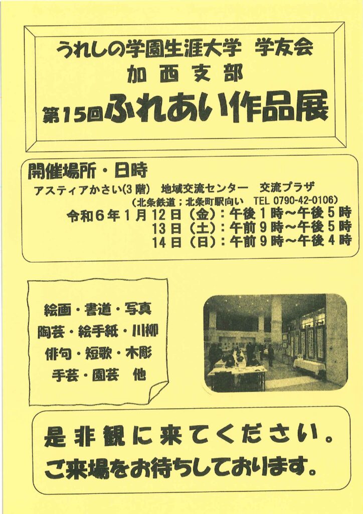 第15回ふれあい作品展(うれしの学園生涯大学学友会加西支部)